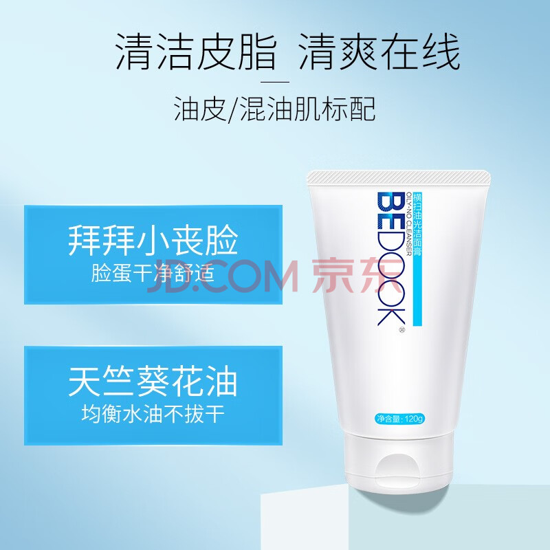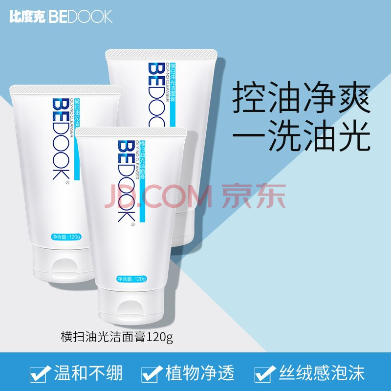 商品相册:比度克控油洗面奶男女净爽清洁横扫油光洁面膏120g第