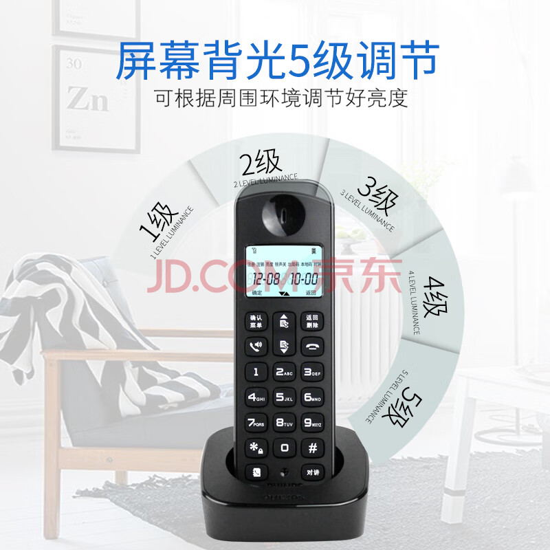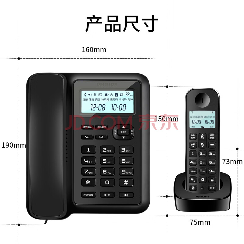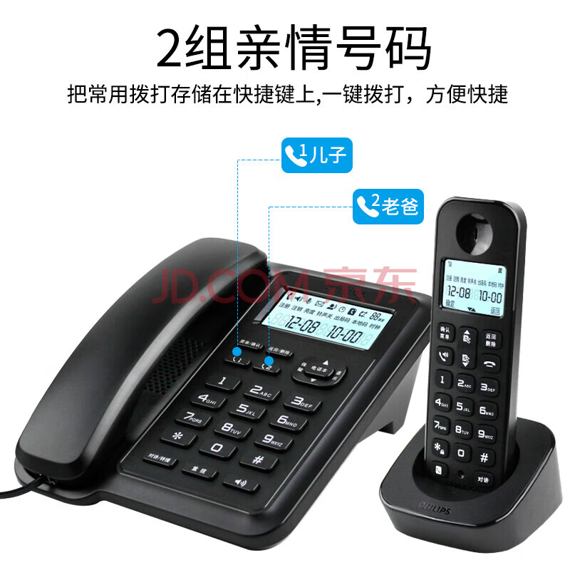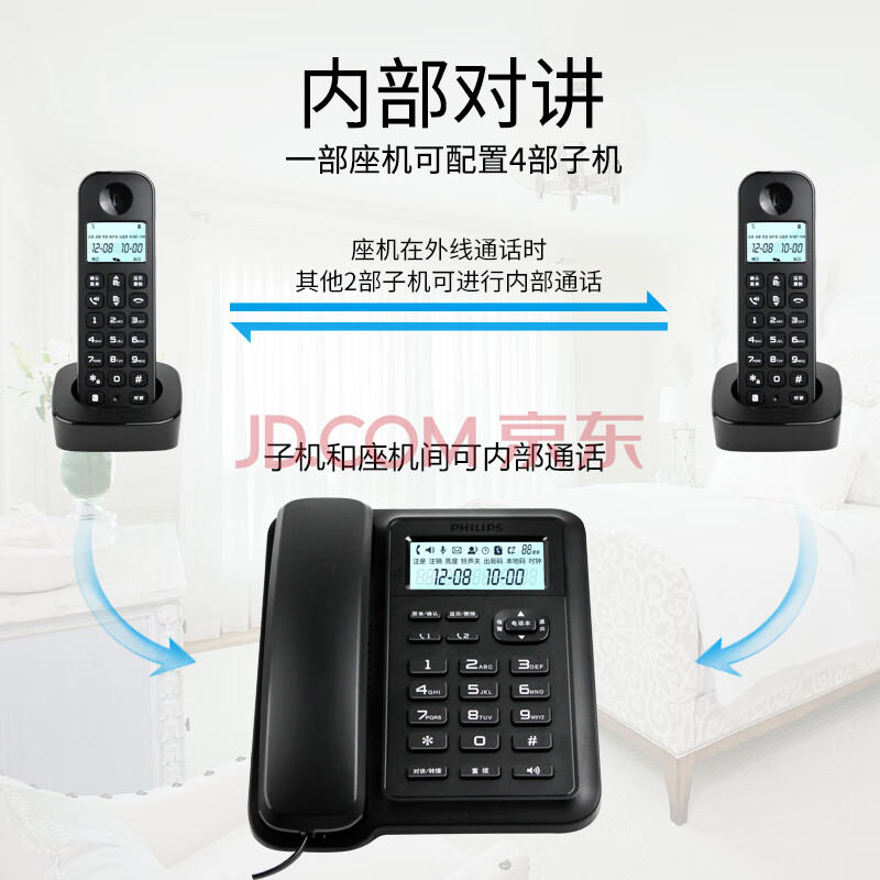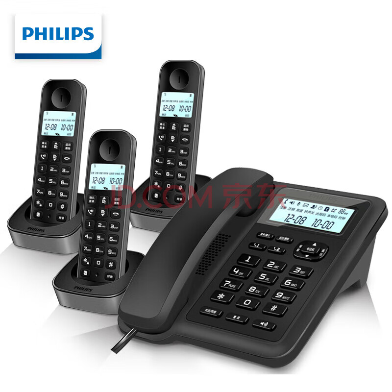 商品相册:飞利浦(PHILIPS)数字无绳电话机 无线座机 子母机 办公家用 信号覆盖广 屏幕白色背光 DCTG167一拖三黑色第