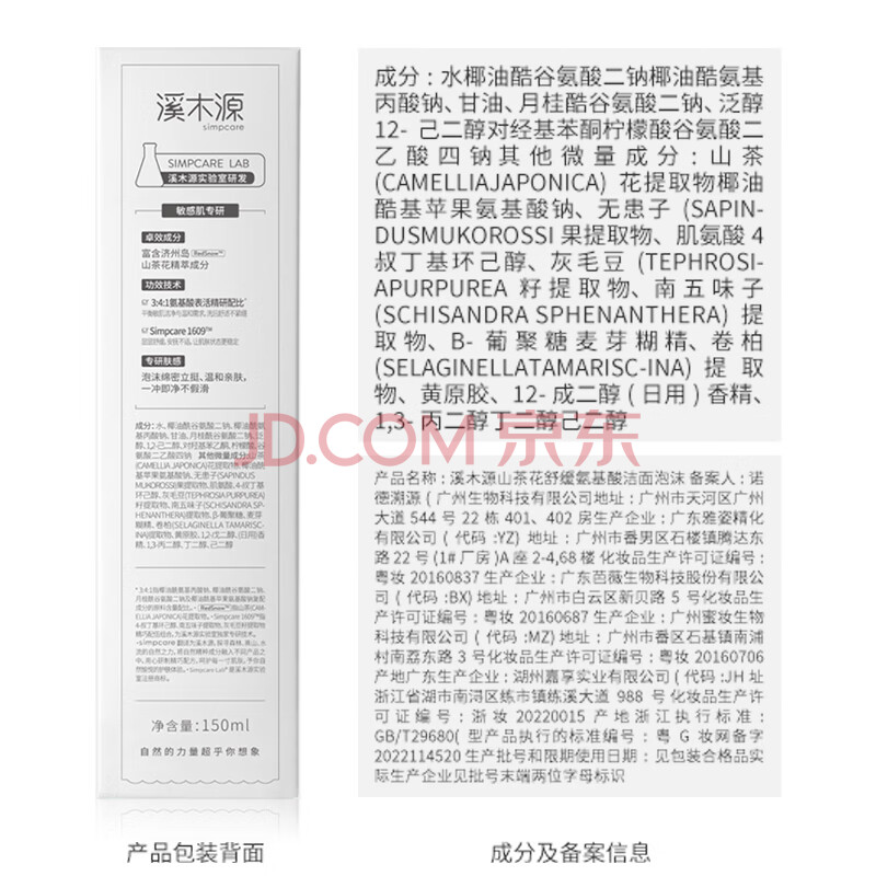 商品相册:溪木源山茶花洁面泡沫氨基酸洗面奶三支装温和清洁敏感肌护肤生日礼物女第