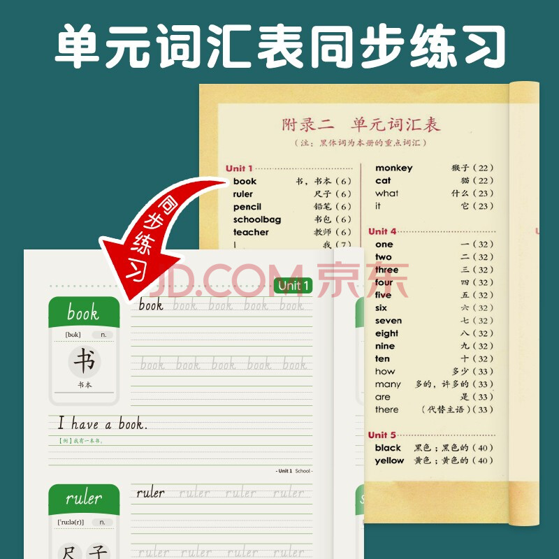 商品相册:绍泽文化 小学生1-3年级英语单词描红本SL人教版课文同步练习本 儿童英文斜体单词默写本练字帖 三年级上下册第