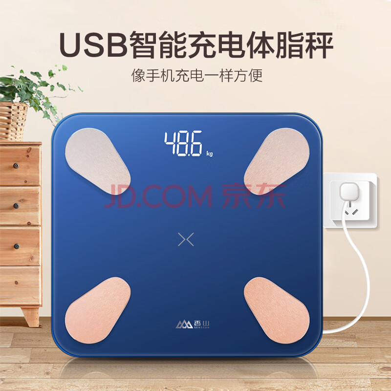 商品相册:香山 体脂称 智能体重秤 双频测脂更专业 家用防撞防摔电子秤减肥 APP数据监测 F2R 湛蓝【充电款】第