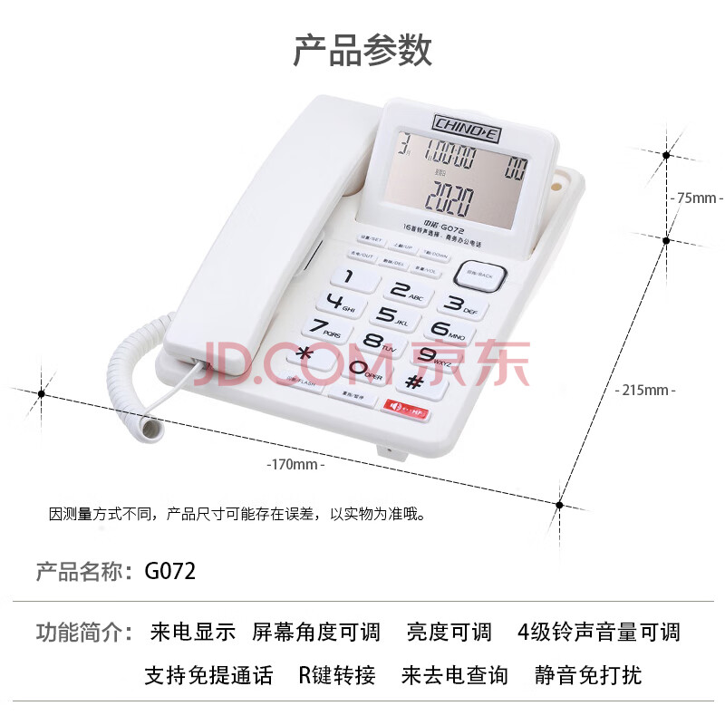 商品相册:中诺电话机座机固定电话来电显示屏幕角度可调独立音量免打扰有绳板机G072白色办公伴侣第