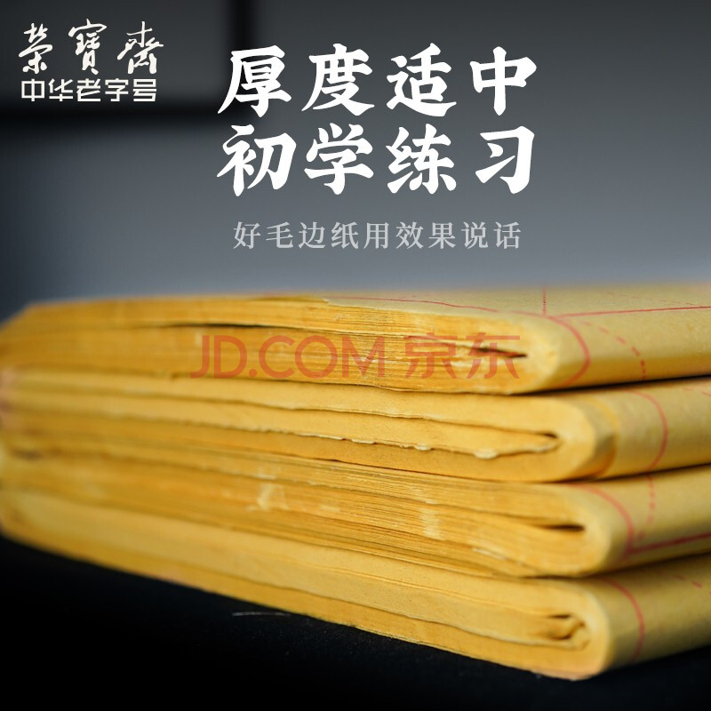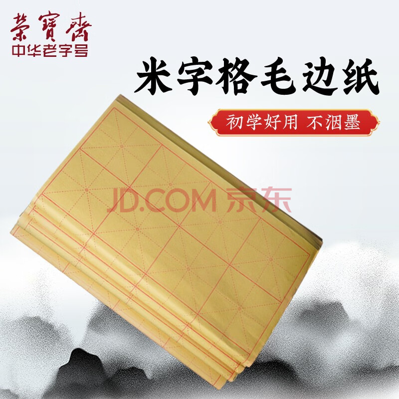 商品相册:荣宝斋 米字格宣纸毛边纸 半生熟日星宣纸仿古书法专用练习作品初学者毛笔字帖 竹浆纸12cm*15格/70张第