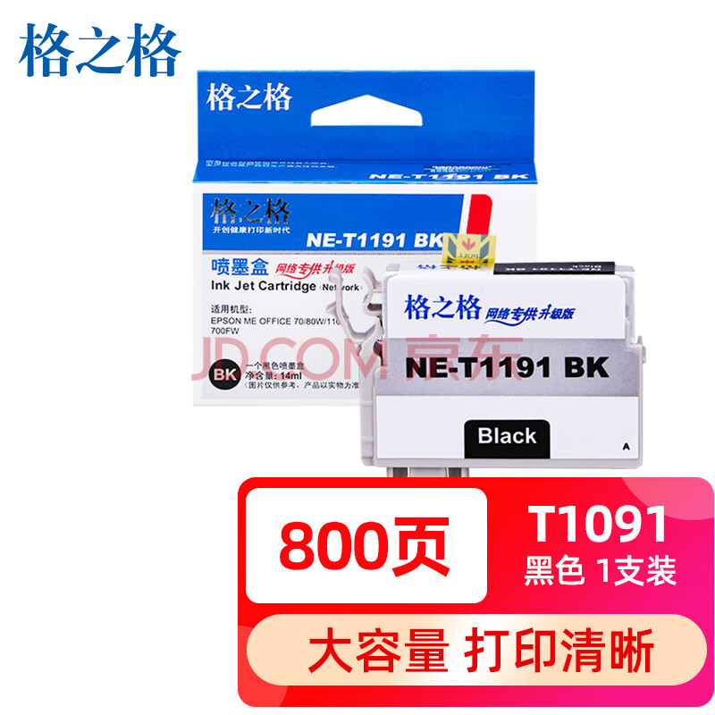 商品相册:格之格T1191黑色大容量墨盒NE-T1191BK适用爱普生ME70W ME80W ME1100 ME700FW打印机墨盒第