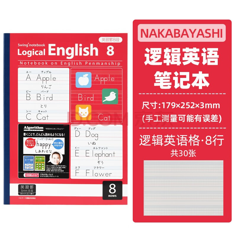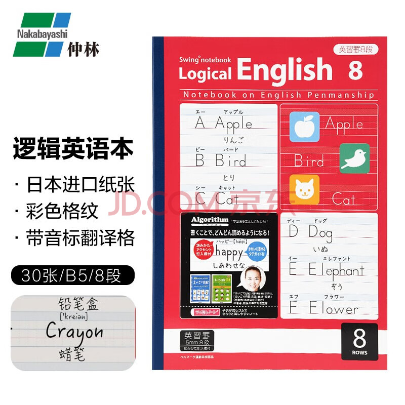 商品相册:Nakabayashi仲林英语本B5/30张 学生作业本外语单词练习笔记本 8段第