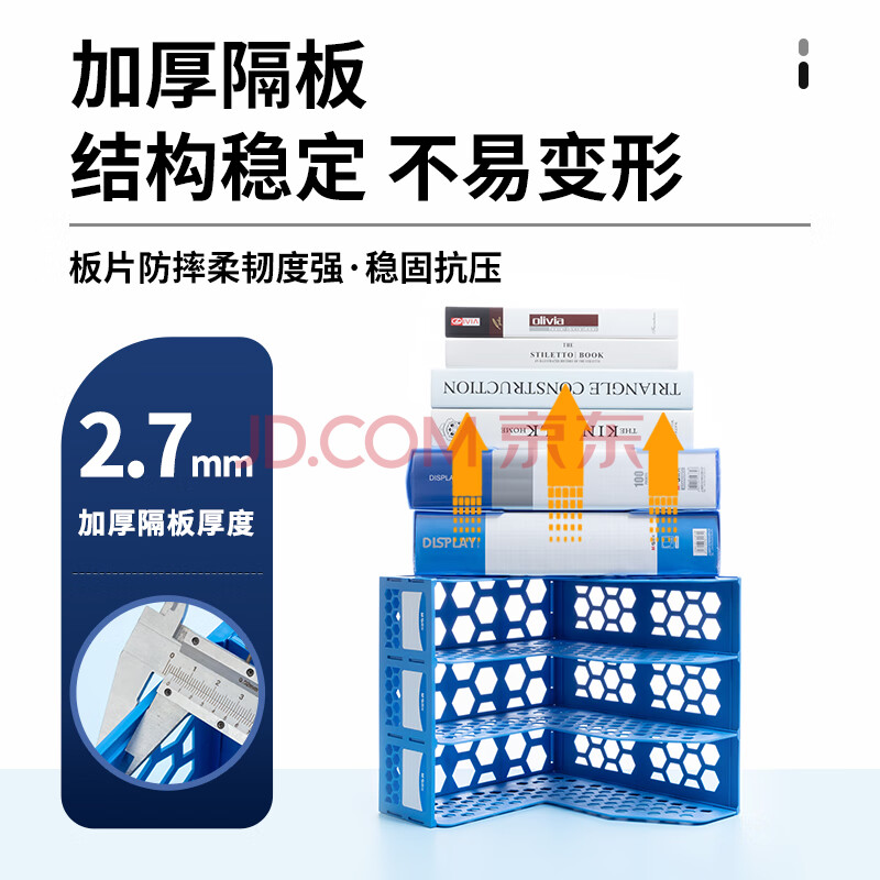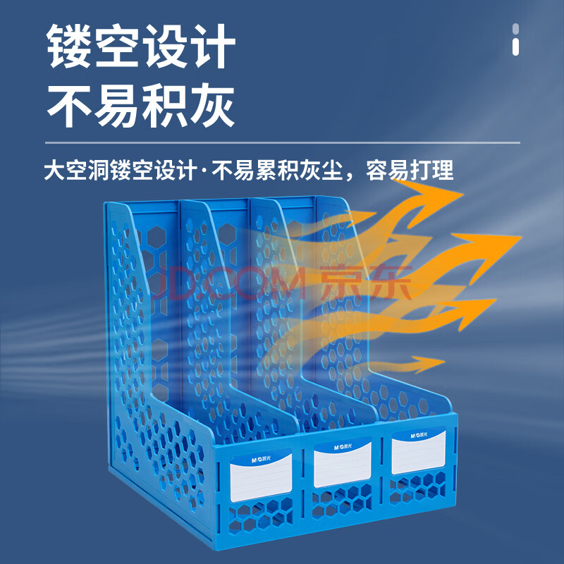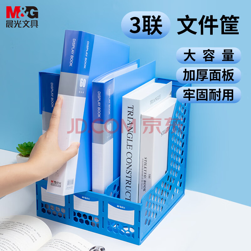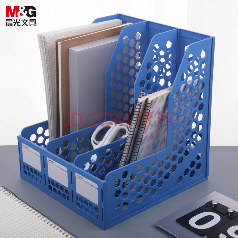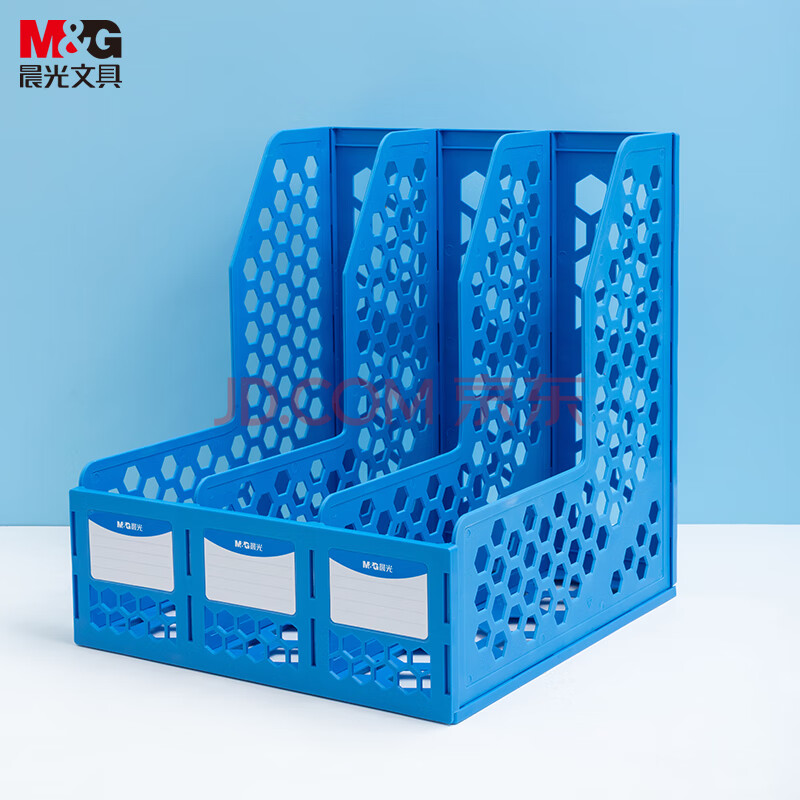 商品相册:晨光(M&G)三联镂空桌面文件框 三栏带标签稳固文件栏/文件筐/资料框 蓝色单个装ADM929R7B第