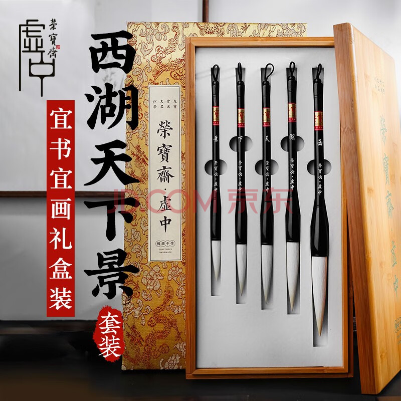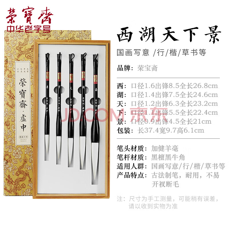 商品相册:荣宝斋 毛笔套装 羊毫传统黑檀黑牛角笔杆文房四宝书法国画行篆隶楷手作高档礼盒 西湖天下景第