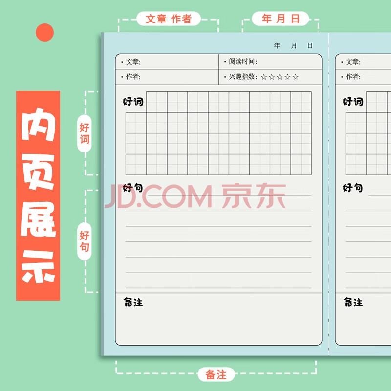 商品相册:法拉蒙faramon小学生专用日积月累读书笔记好词好句摘抄本阅读记录笔记本词语积累学生记录本 绿色小熊10本第