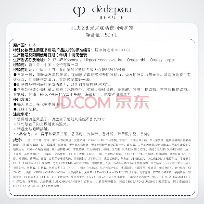 商品相册:肌肤之钥(CPB)【达人专享】钻光夜霜50mL新生弹嫩透亮生日礼物送女友第