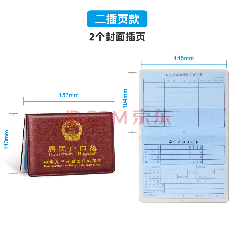 商品相册:DSB(迪士比)户口簿户口本保护套2二插页通用款豪华加厚皮套居民户口本保护套外皮外套外壳枣红色第
