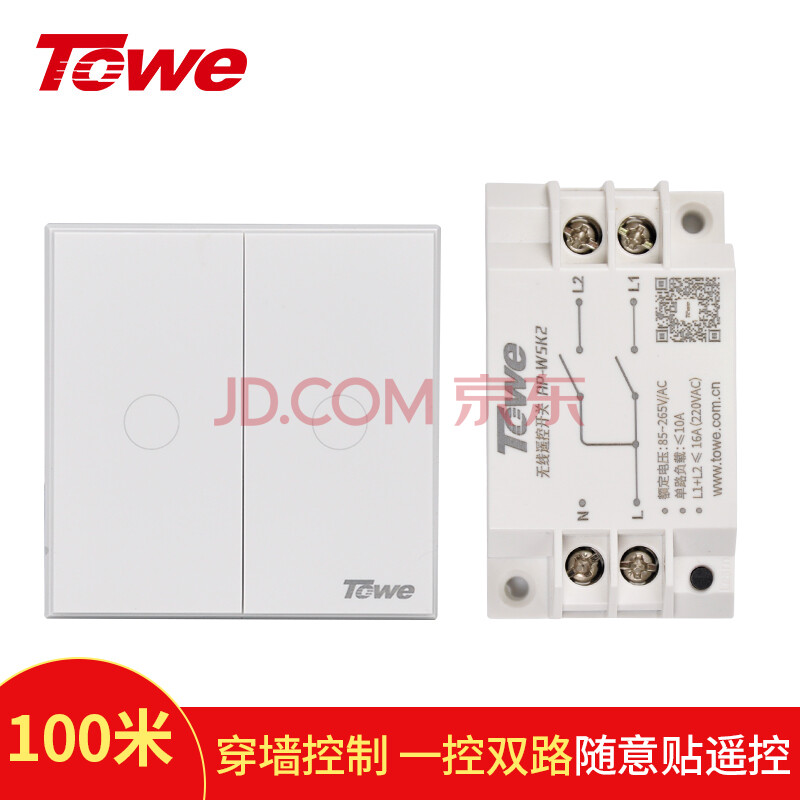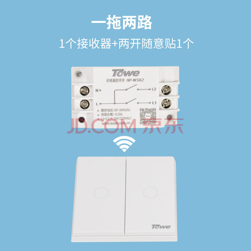 商品相册:TOWE同为无线双控开关免布线遥控开关220v智能无线家用遥控随意贴开关 双控 AP-WSK2/M第