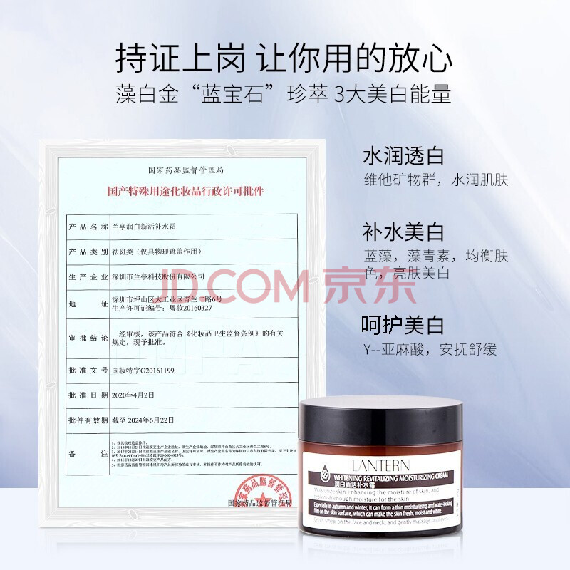 商品相册:兰亭润白新活补水霜50g 美白祛斑保湿滋润面霜 淡化黑色素提亮去黄第