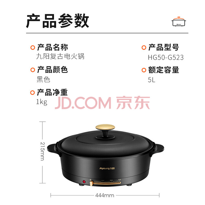 商品相册:九阳(Joyoung)电火锅 煎烤涮多功能电煮锅料理锅大火力5升大容量 HG50-G523 【企业采购】【支持一件代发】第