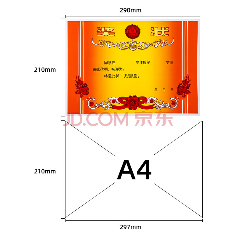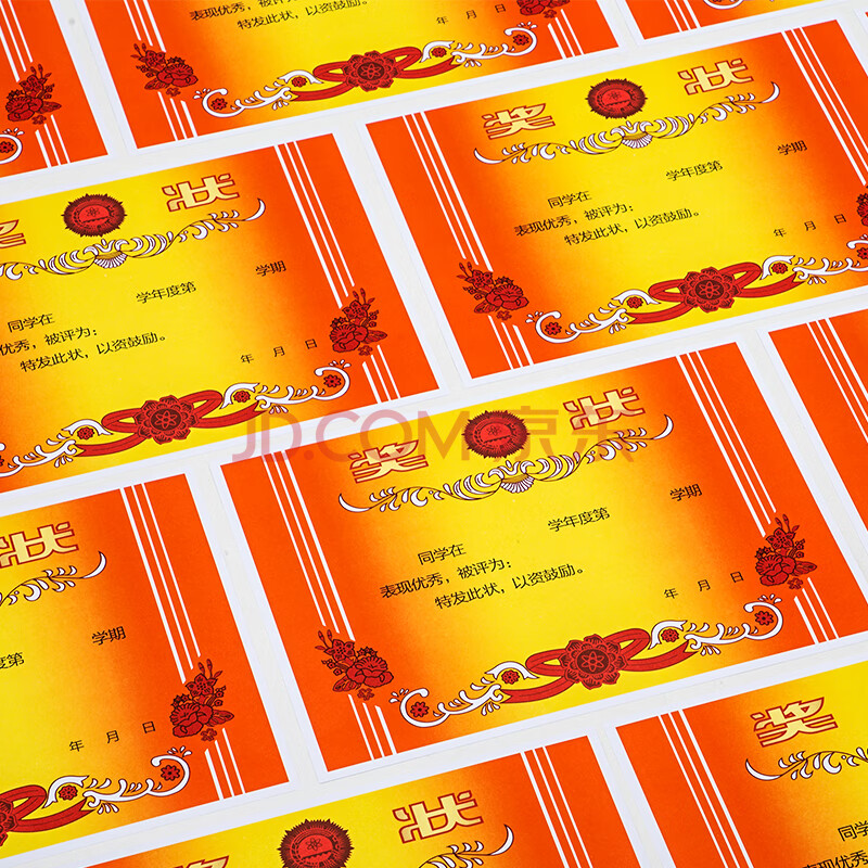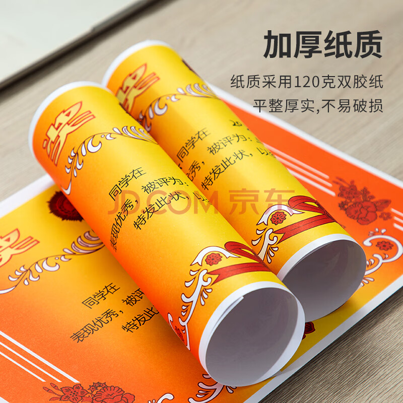 商品相册:得力(deli)A4奖状纸获奖证书 有字款中小学生表扬表彰奖状教师通用 双胶纸 50张/(包)24828第