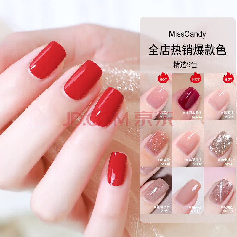 商品相册:Miss Candy显白健康15ml指甲油免烤快干持久可撕拉经典红色美甲 正红NA003第
