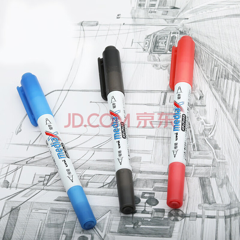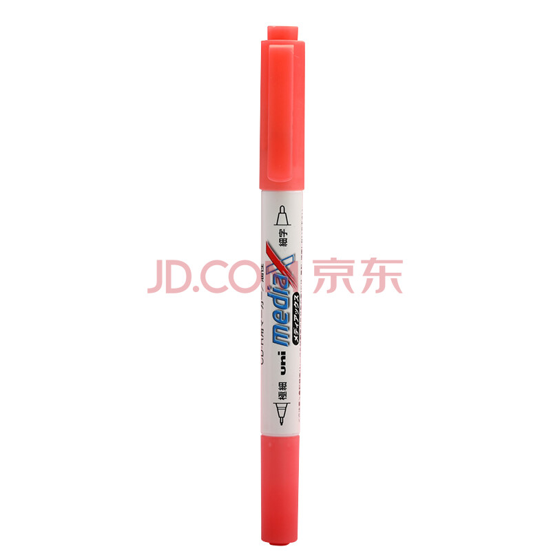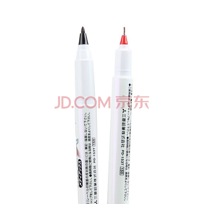商品相册:uni三菱 PD-153T双头光盘笔(细0.4mm/粗0.9mm)办公用速干记号笔 红色 单支装第
