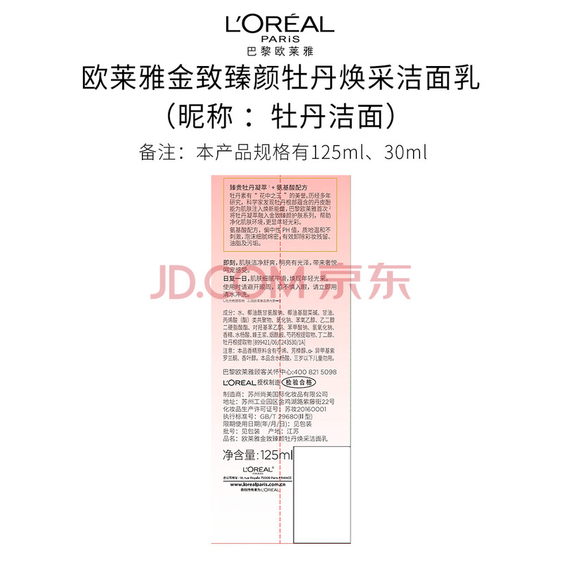 商品相册:欧莱雅牡丹洁面乳125ml氨基酸清洁保湿洗面奶男女护肤品生日礼物第