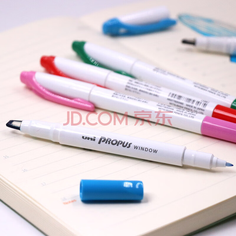 商品相册:uni三菱 双头荧光记号笔 学生作业手账绘画标记笔彩色笔 细0.4mm粗4mm PUS-103T 1支/袋 绿色第
