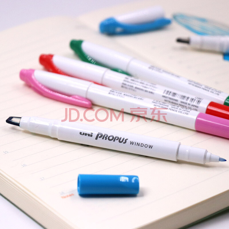 商品相册:uni三菱 双头荧光记号笔 学生作业手账绘画标记笔彩色笔 细0.4mm粗4mm PUS-103T 1支/袋 蓝色第