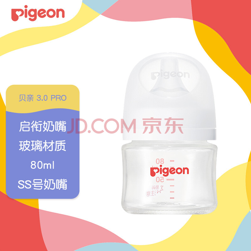 商品相册:贝亲(Pigeon)【新生儿第一个奶瓶】玻璃奶瓶宽口径奶瓶80ml SS号奶嘴 0月+第