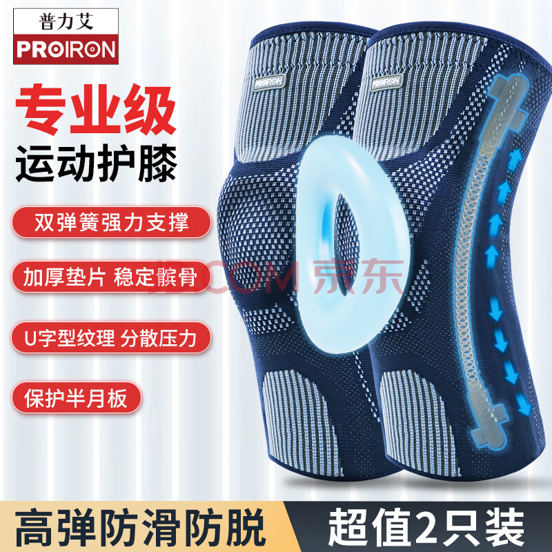 商品相册:PROIRON普力艾 护膝运动男女跑步护具保护半月板U字型保暖护膝 一对XL码第