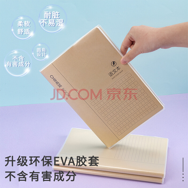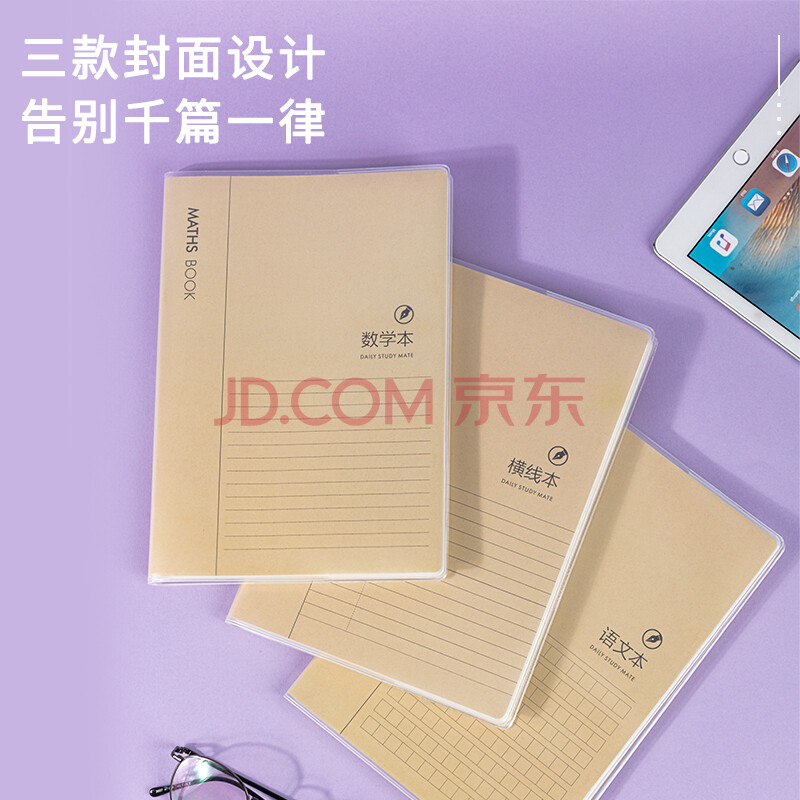商品相册:得力(deli)牛皮纸语文本笔记本子胶套本 学生软抄本作业本记事本日记本文具 16K96张 4本装 T1696第