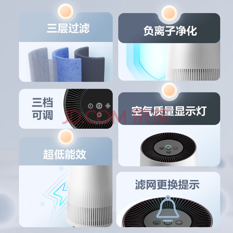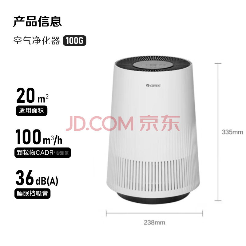 商品相册:格力(GREE)空气净化器办公桌面除细菌烟味异味负离子净化 立体进风复合滤网空气监测100G礼品第