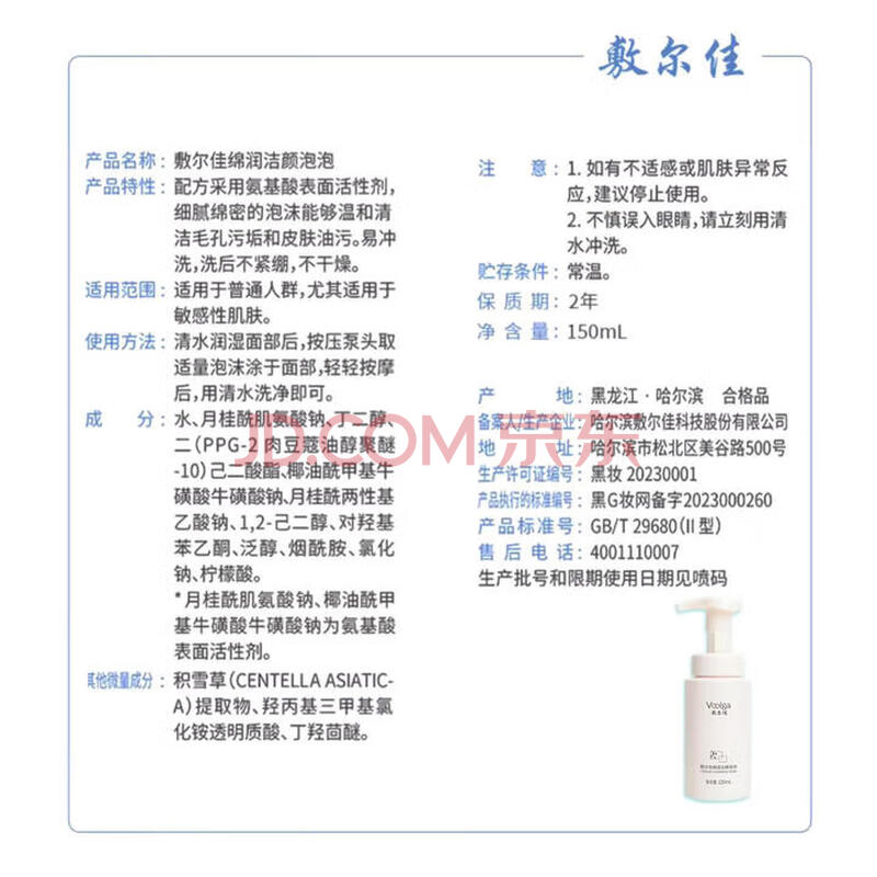 商品相册:敷尔佳绵润洁颜泡泡150ml 氨基酸洗面奶泡沫温和脆弱肌清洁第