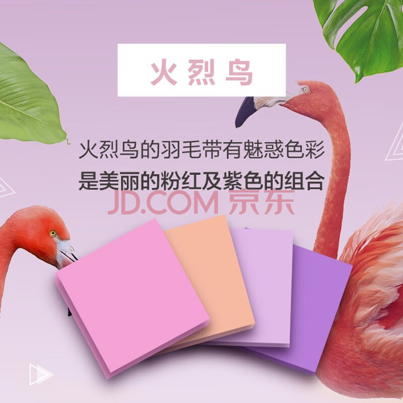 商品相册:3M 便利贴 报事贴/便条纸/便签纸/便签本 办公用品 学习用品文具 火烈鸟系列4色狠贴报事贴 654SS-MC-7第