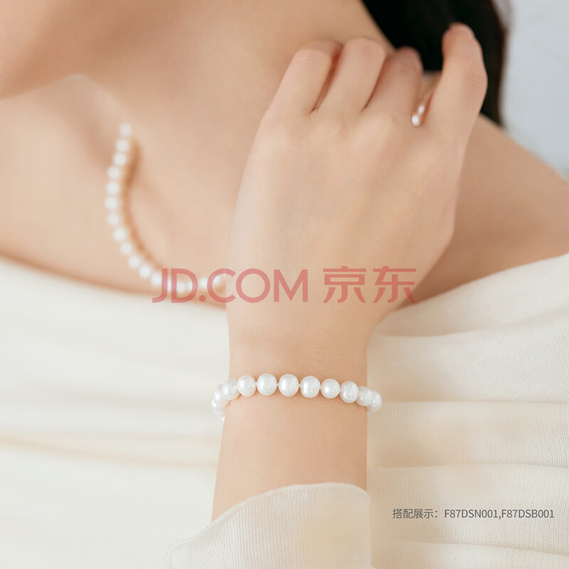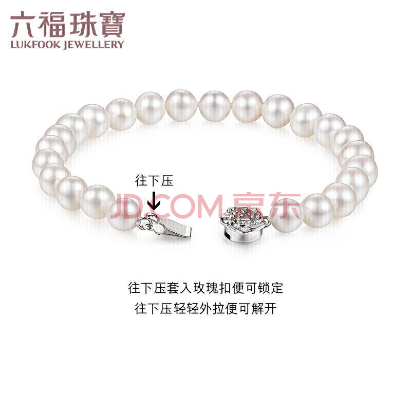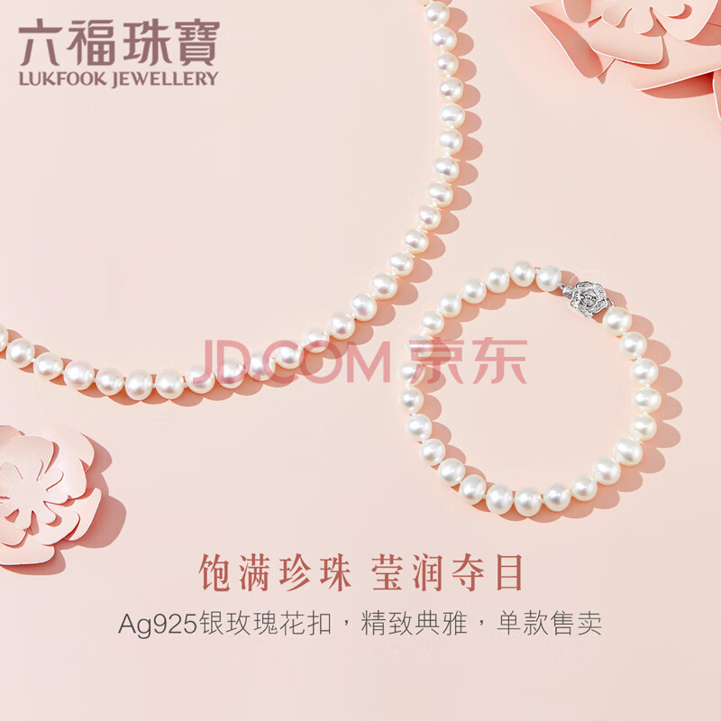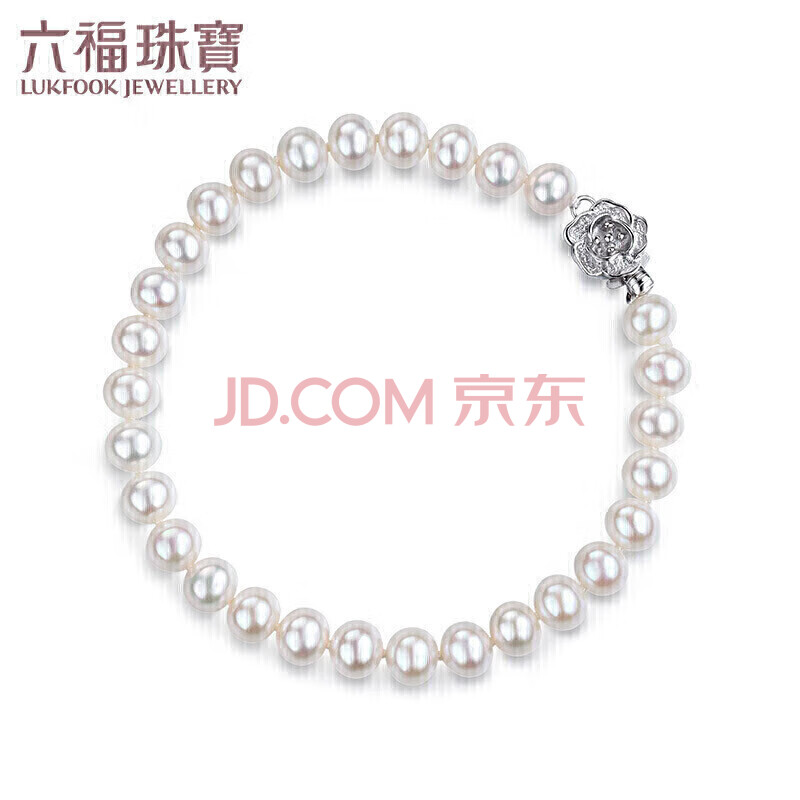 商品相册:六福珠宝 珍珠手链Ag925花形扣莹泽淡水珍珠手串礼物 总重约10.52克第1张/共8