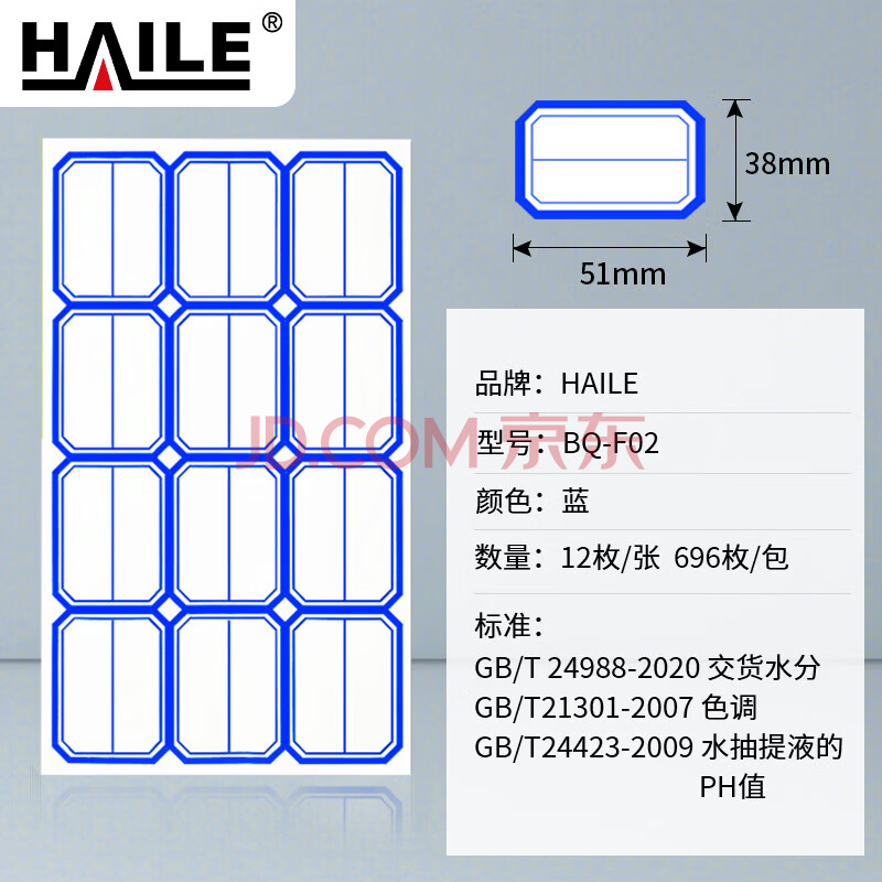 商品相册:HAILE不干胶标签纸姓名贴51*38mm口取纸 12枚/张 58张/包BQ-F02 蓝色第