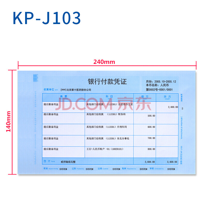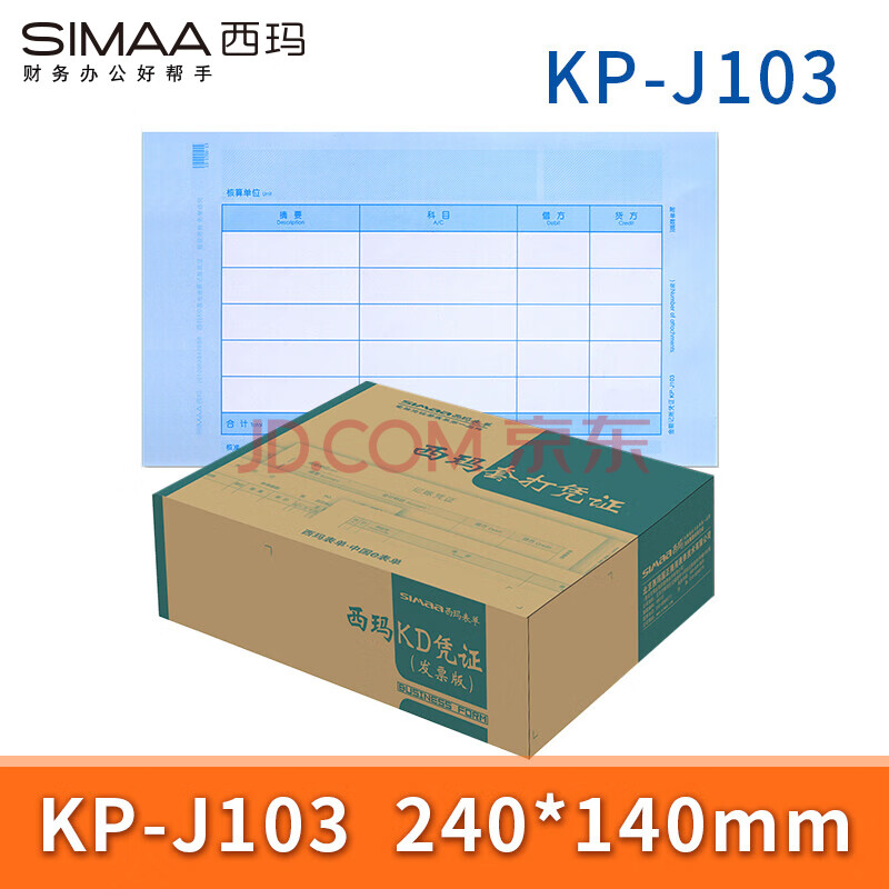 商品相册:西玛(SIMAA)KP-J103 KD激光金额记账凭证 240*140mm 增票版凭证打印纸金蝶软件适用 500份/包 4包/箱第
