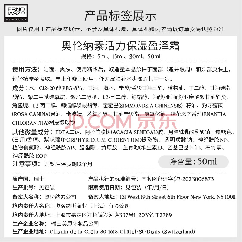 商品相册:奥伦纳素(Erno Laszlo)保湿面霜 50ml 素颜豆腐霜方罐油霜修护滋养紧致女神礼物第