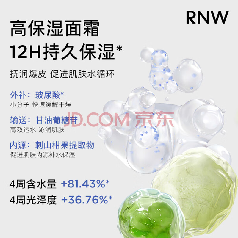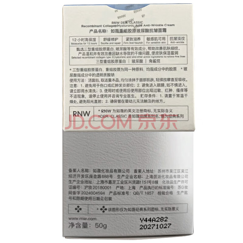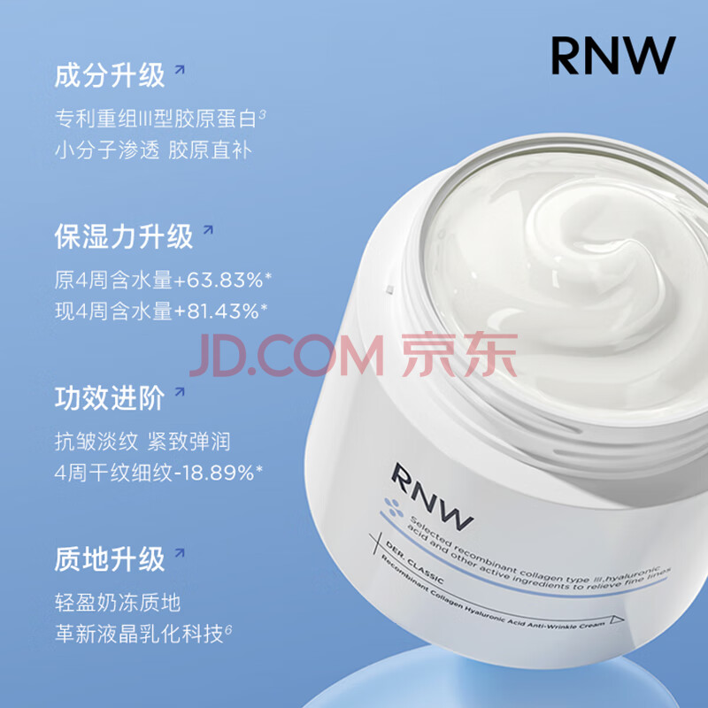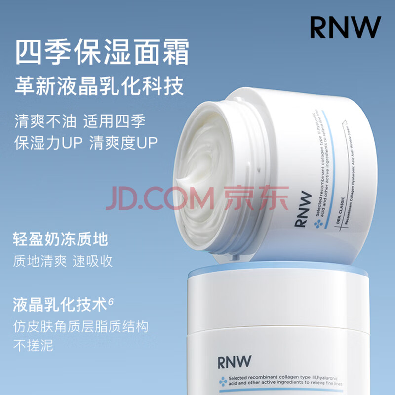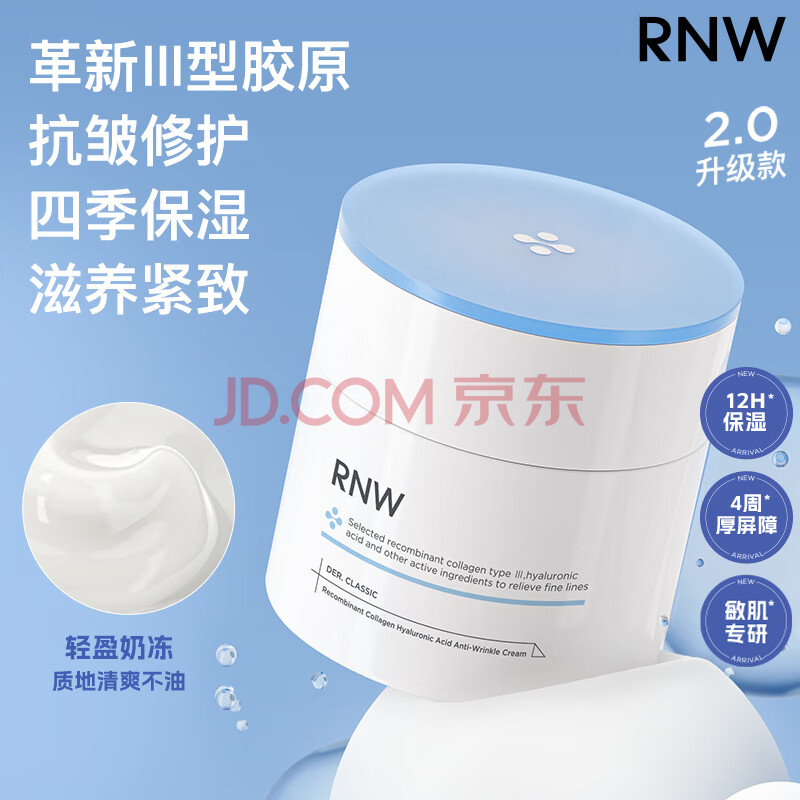 商品相册:如薇(RNW)重组胶原蛋白玻尿酸紧致抗皱面霜50ml滋润12H保湿秋冬敏感肌可用第
