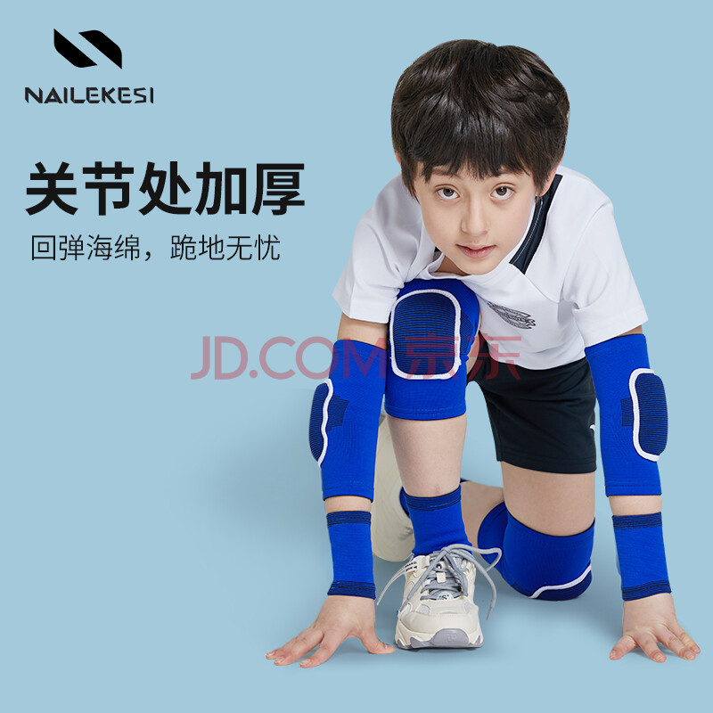 商品相册:耐力克斯儿童护膝护肘运动套装护腕护踝运动全套足球装备防摔护具四件套第