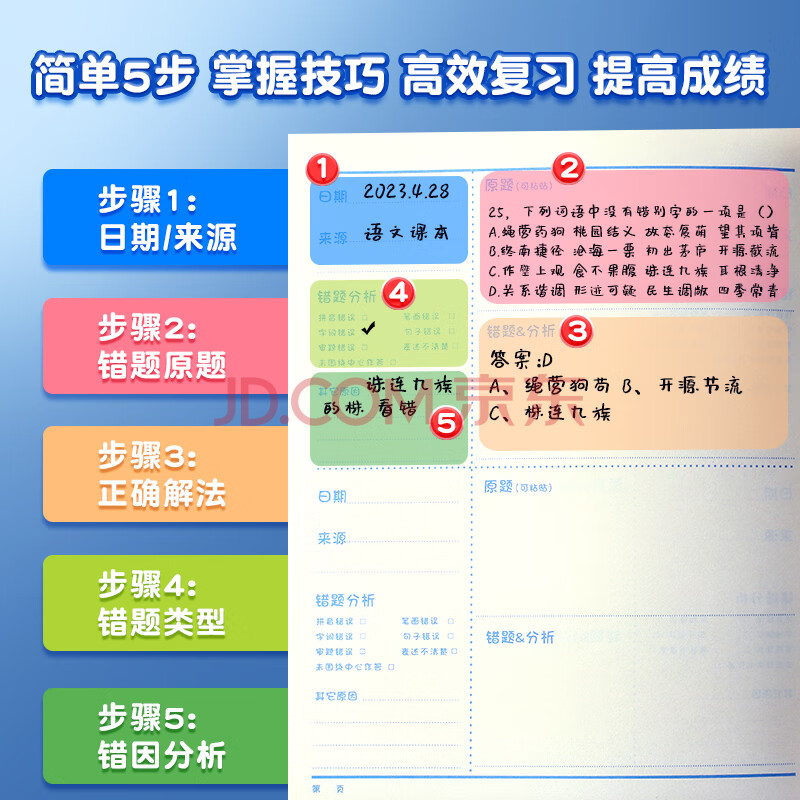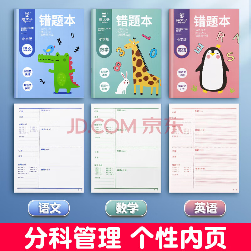 商品相册:猫太子数学错题本小学生初中三年级一年级二年级语文英语笔记纠错本纠正复习作业登记本错题集整理改错本第
