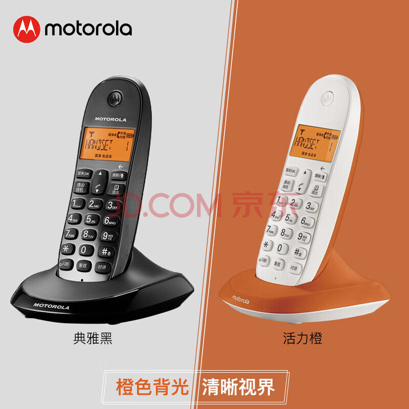 商品相册:摩托罗拉(Motorola)数字无绳电话机 无线座机 子母机 单机 办公家用 来电显示 三方通话 C1001XC(橙色)第