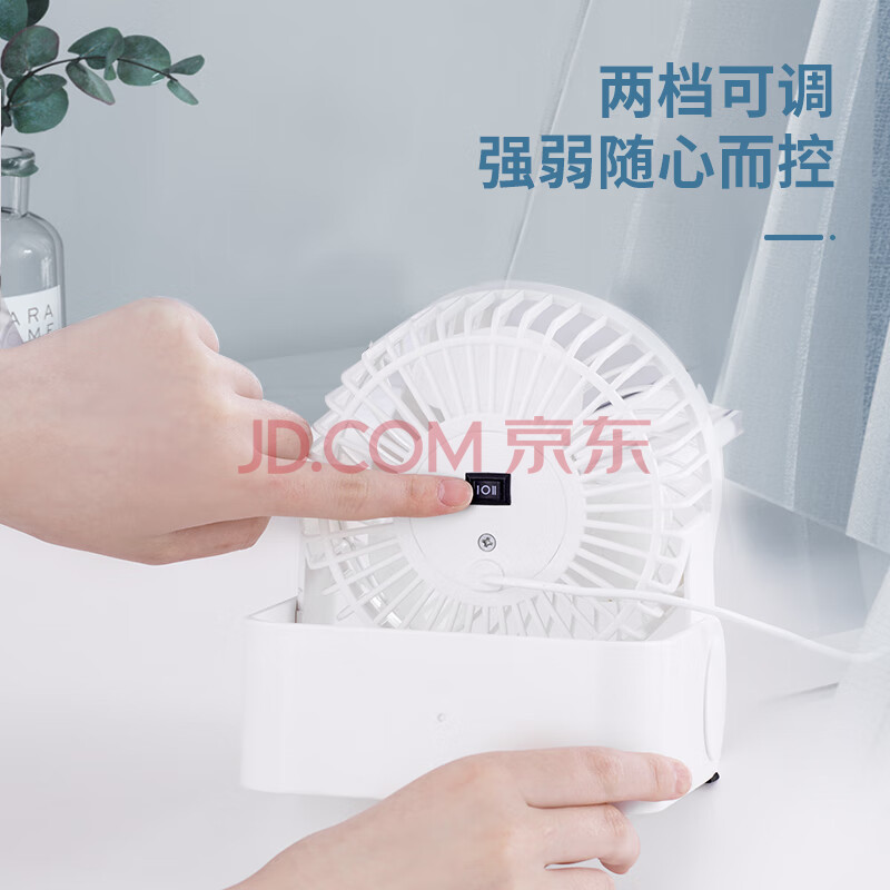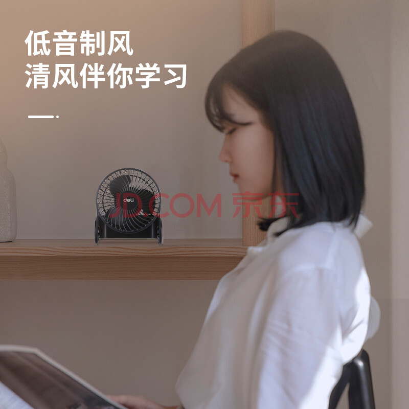 商品相册:得力USB桌面风扇两档风速迷你轻音家用卧室办公室台式桌面风扇学生宿舍风扇U型底座小台扇/电风扇 黑第