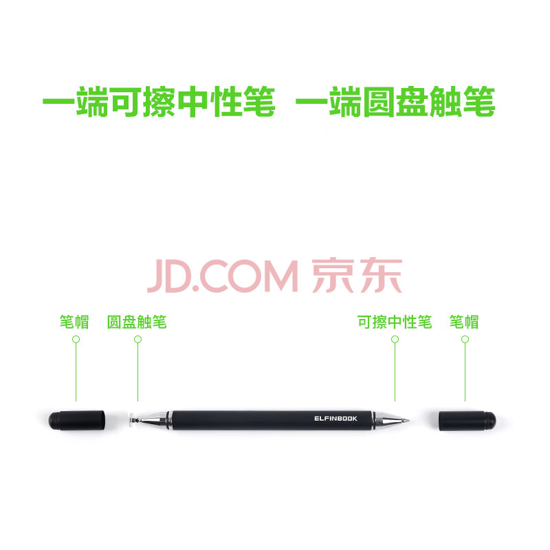 商品相册:ELFINBOOK 0.5mm金属两用笔 热可擦黑色子弹头中性笔水笔签字笔+屏幕手写圆盘触笔 单支装JH100第