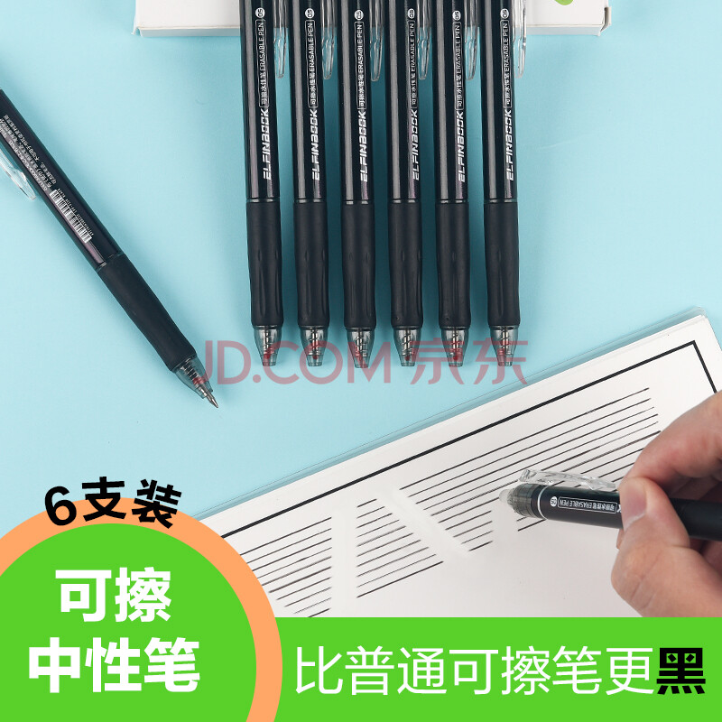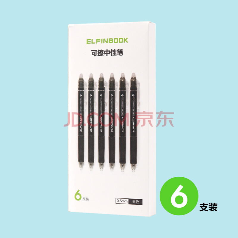 商品相册:ELFINBOOK 热可擦0.5mm黑色子弹头按动中性笔水笔签字笔 6支/盒H18第