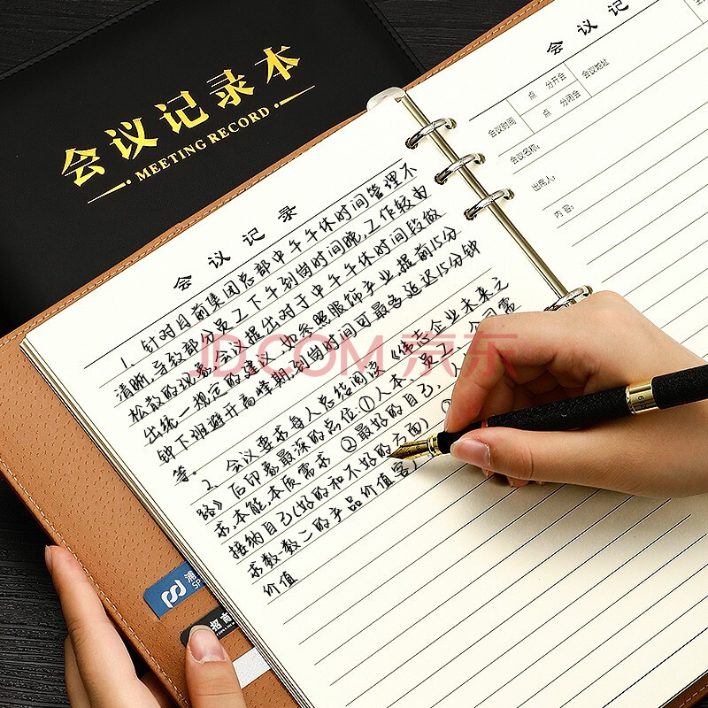 商品相册:嘉然恒 大号会议记录本加厚笔记本子可拆卸活页本记事本办公文具16K工作笔记本商务皮面本子-16K黑色第