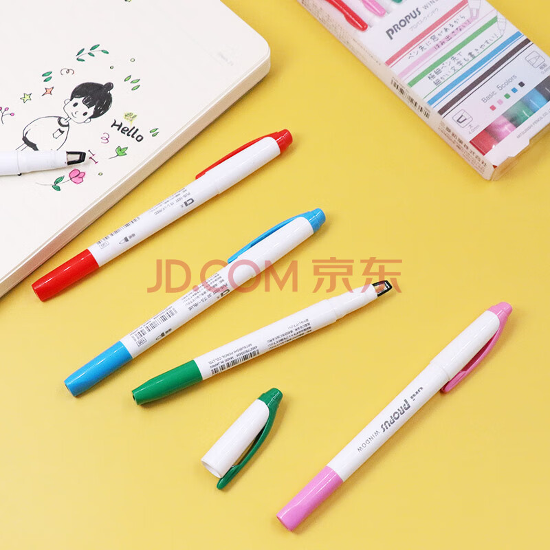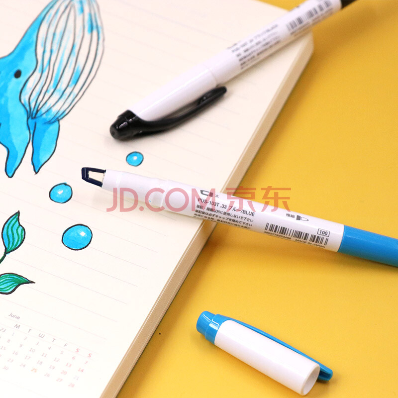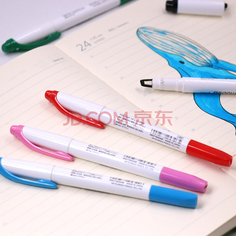 商品相册:uni三菱 双头荧光记号笔 学生作业手账绘画标记笔彩色笔 细0.4mm粗4mm PUS-103T 1支/袋 黑色第