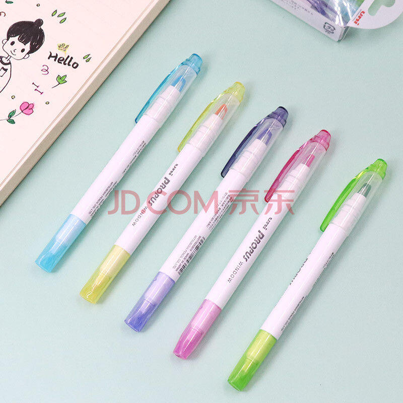 商品相册:uni三菱 双头荧光记号笔 学生作业手账绘画标记笔彩色笔 细0.4mm粗4mm PUS-103T 1支/袋 浅粉色第
