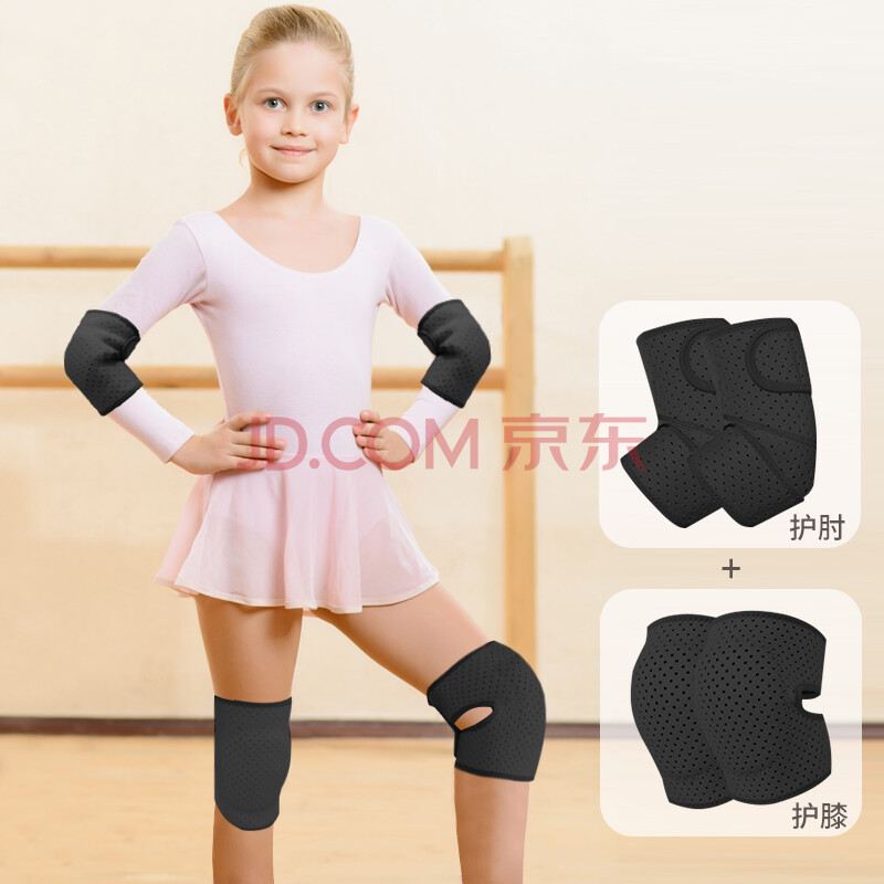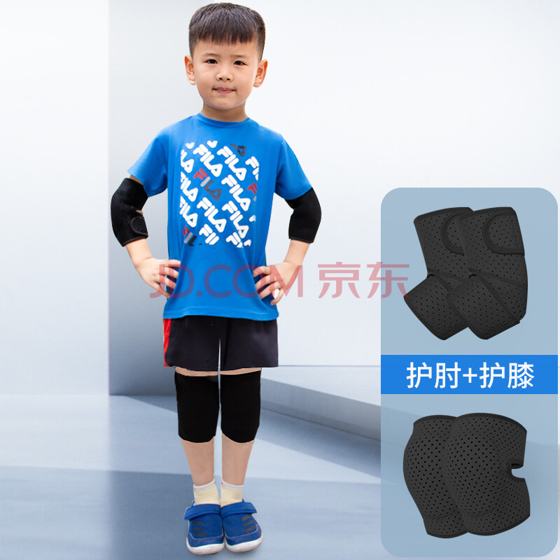 商品相册:驰动儿童护膝护肘套装透气小孩运动膝盖套篮舞蹈防撞跪地护具黑色4只第