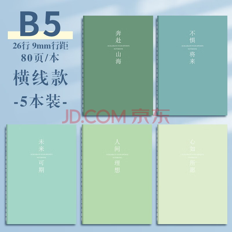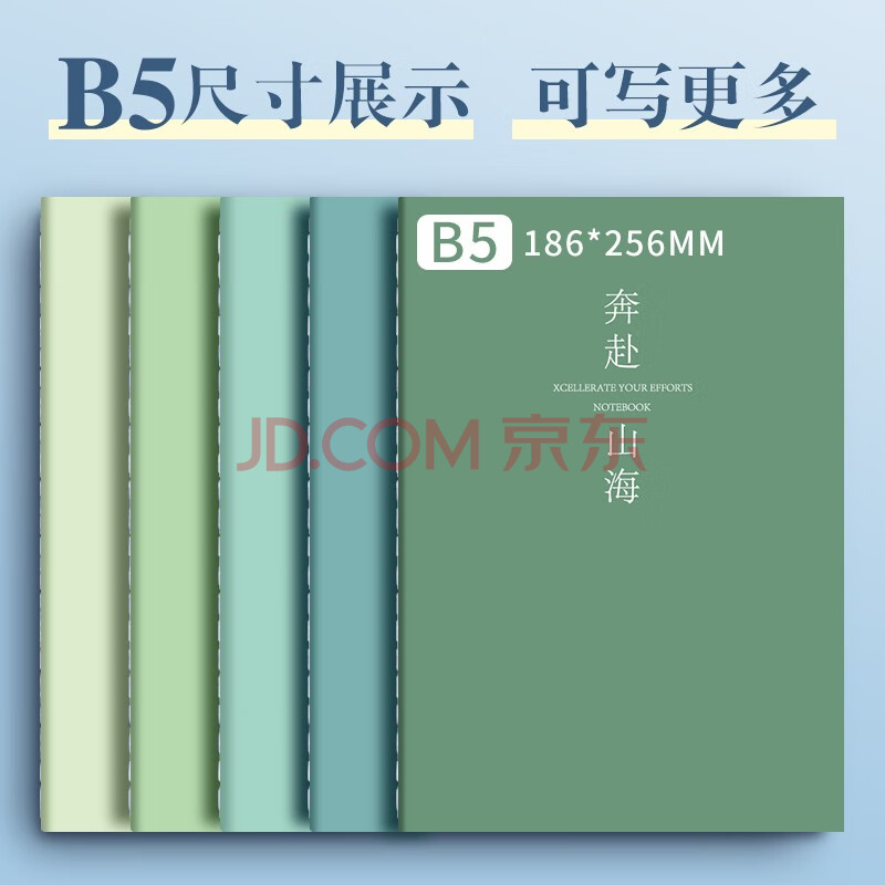 商品相册:法拉蒙【开学必备】5本装B5横线笔记本子简约初高中大学生考研软面抄本车线本记事本加厚缝线本 浅色款第