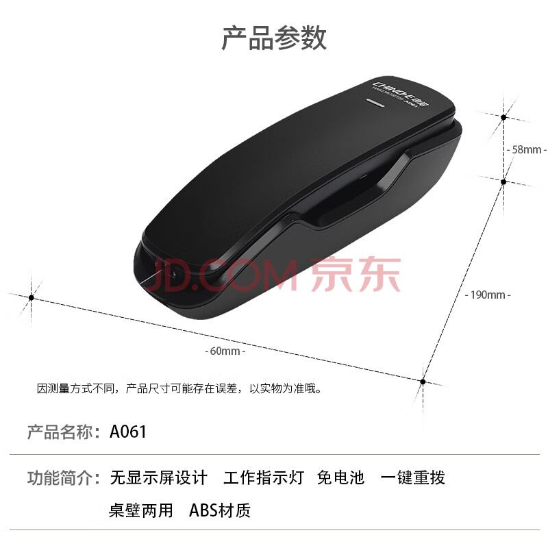 商品相册:中诺(CHINO-E)电话机座机酒店电话小挂机桌壁两用免电池壁挂式小分机A061黑色办公伴侣第