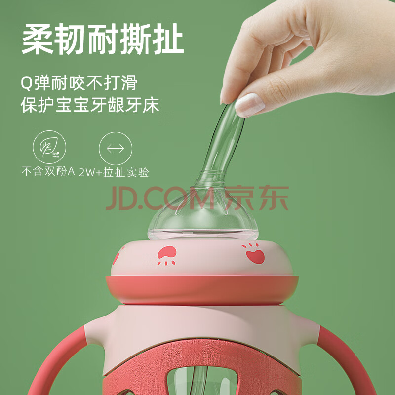 商品相册:欧贝妮 吸管奶瓶 宽口径玻璃奶瓶 婴儿奶瓶手柄6个月1-3岁以上第