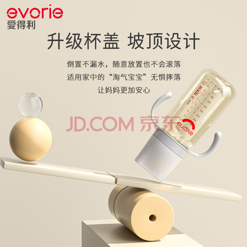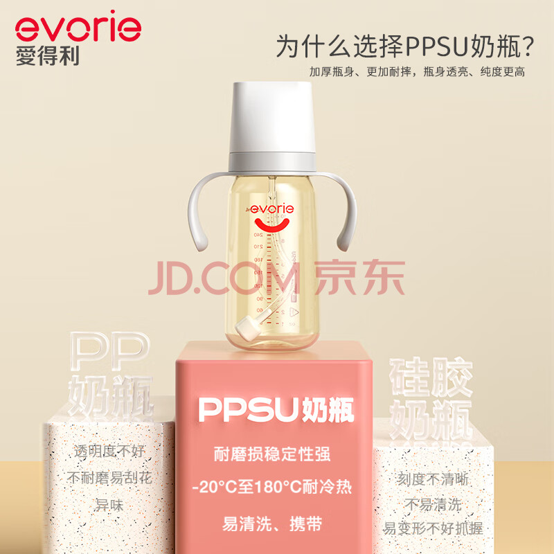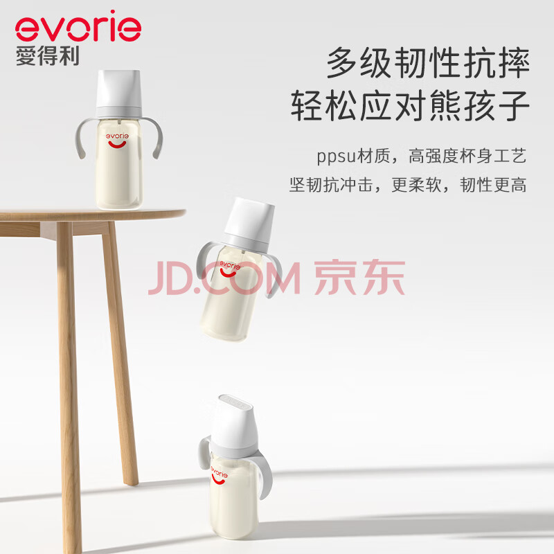 商品相册:爱得利(evorie) 婴儿奶瓶6个月以上 宽口径带手柄带重力球PPSU奶瓶 300ml灰第
