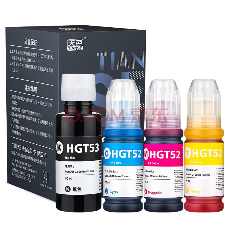 商品相册:天色GT53/52墨水四色套装 适用惠普hp518墨水519 516 538 418打印机410 319 310 gt5820 5810打印机墨盒墨水第