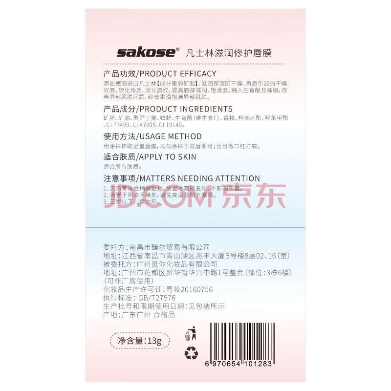 商品相册:sakose凡士林唇膜13g 夜间睡眠润唇膏淡化唇纹去死皮角质带镜子加唇膜刷第
